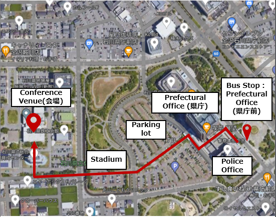 It takes around 20-25 minutes by BUS from Kanazawa Station to the venue. (250 yen) Cash ONLY