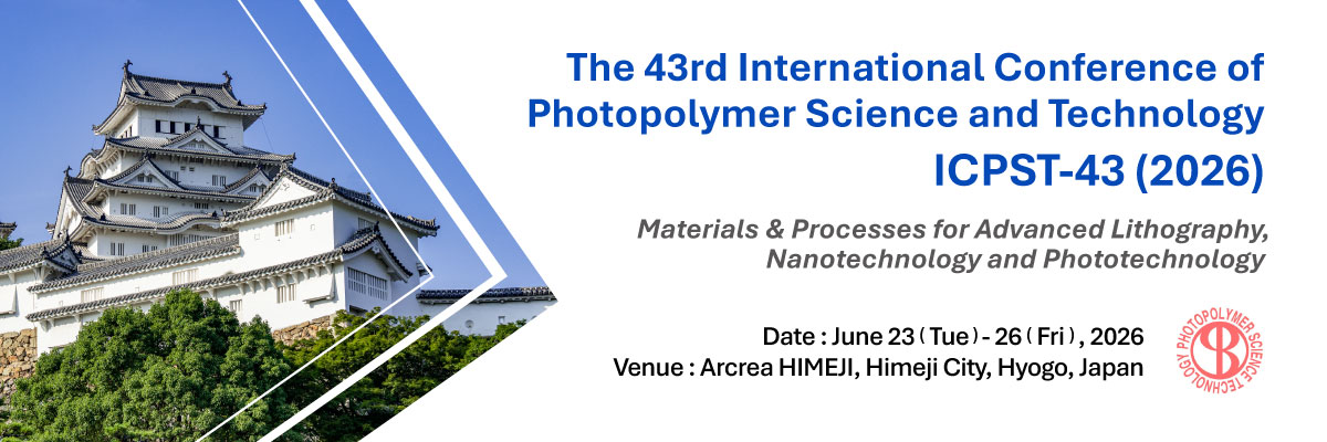 The 43rd International Conference of Photopolymer Science and Technology, Materials & Processes for Advanced Lithography, Nanotechnology and Phototechnology (ICPST-43, 2026) will be held at Arcrea HIMEJI, Himeji City, Hyogo, Japan, on June 23-26, 2026. All the contributors of papers on the scientific progress and the technical development related to photopolymers are cordially invited.